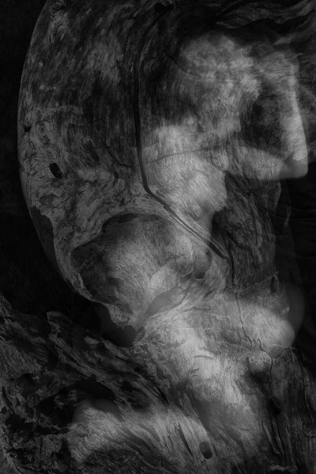 Sento il mio corpo costituito di materia simbolica, come in una vera e propria metamorfosi. Le crepe, le venature, le protuberanze di rocce, terra, cortecce d'albero, radici interpretano e rivelano tensioni, sensazioni, talvolta paure legate alla corporeità del nostro essere. L'oscurità della notte, le luci e le ombre che disegnano il buio mi avvicinano alla visione interiore in cui si mescolano talvolta sensualità e senso di morte, di pietrificazione, di trasformazione in chiave mitologica di aspetti profondi, spesso inconsci, del nostro esistere. (2016)
